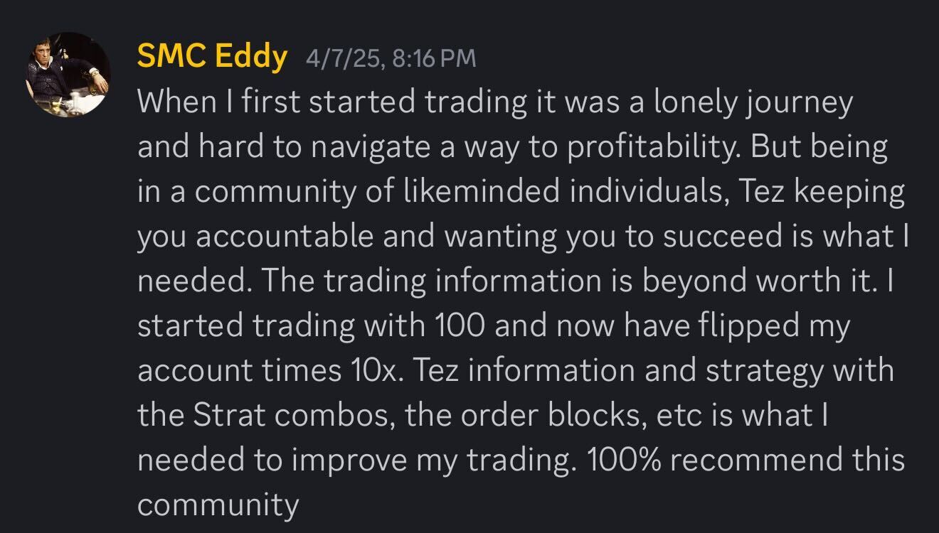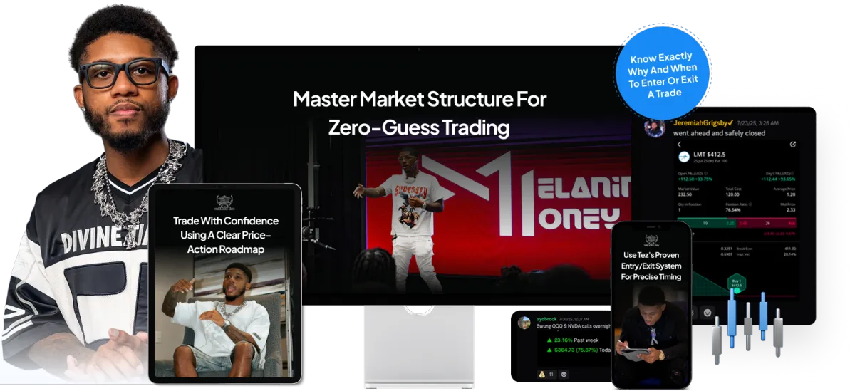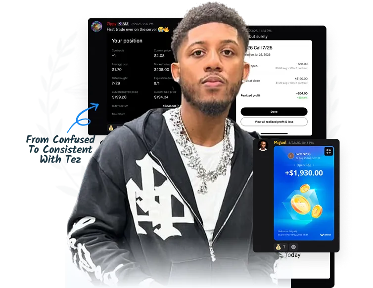 Tez has helped hundreds of traders transition from frustration to freedom using the same 3-Step System he developed after years in the markets. A seasoned options trader and mentor, he blends technical analysis with mindset mastery to teach others how to think like professionals, not gamblers. Over the years, Tez has guided everyday people from 9-to-5 workers to full-time traders-on how to structure their days, manage risk, and execute with discipline. His focus isn't hype-it's habits, structure, and mastery, built through live interaction, real market examples, and consistent accountability.